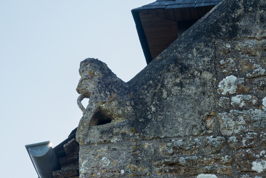 Logis haut, fin 15e- début 16e siècle. Pignon découvert. Détail d'une pierre d'assise sculptée d'un lionImmatriculation