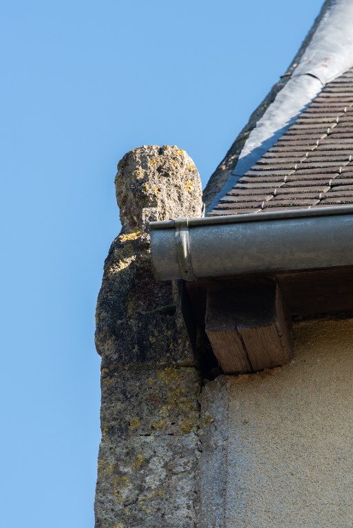 Logis haut, fin 15e-début 16e siècle. Pignon découvert. Détail d'une pierre d'assise sculptée d'un lionImmatriculation