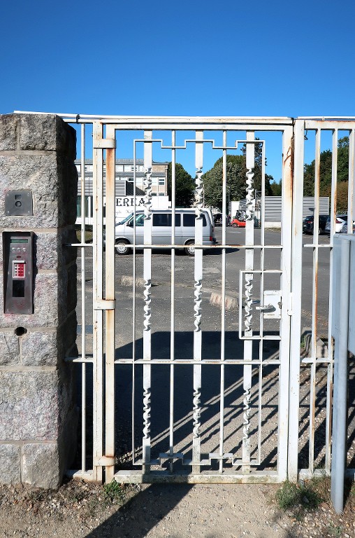 Grille en fer forgé de Raymond Subes, vers 1968-1969 : détail sur une porte piétonne.Immatriculation