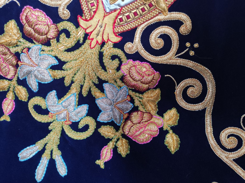 Détail des broderies : décors florauxImmatriculation
