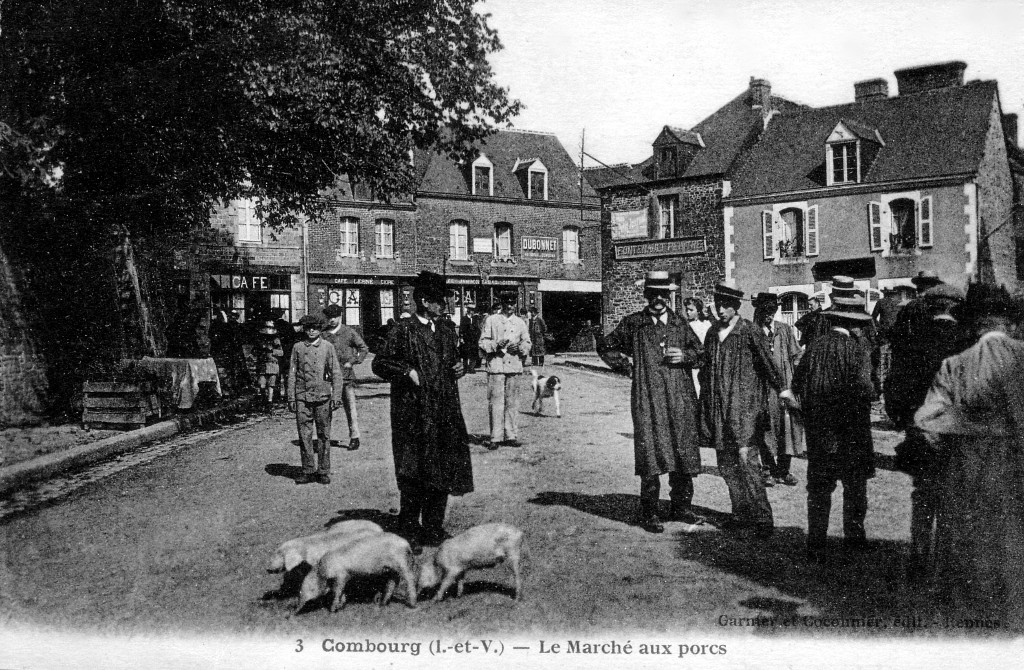 Carte postale, Marché aux porcs de la Place du Champ avec en fond la Templerie et sa maçonnerie de briques (début 20e siècle).Immatriculation