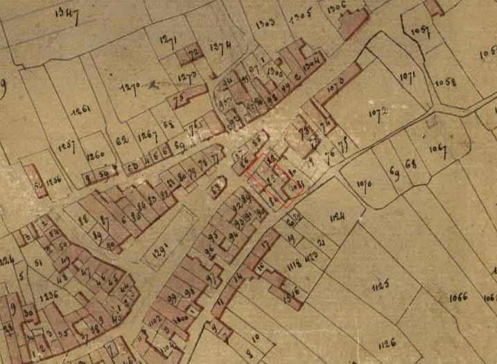 Extrait du cadastre napoléonien de 1827 avec la maison et ses dépendances en pan de bois.