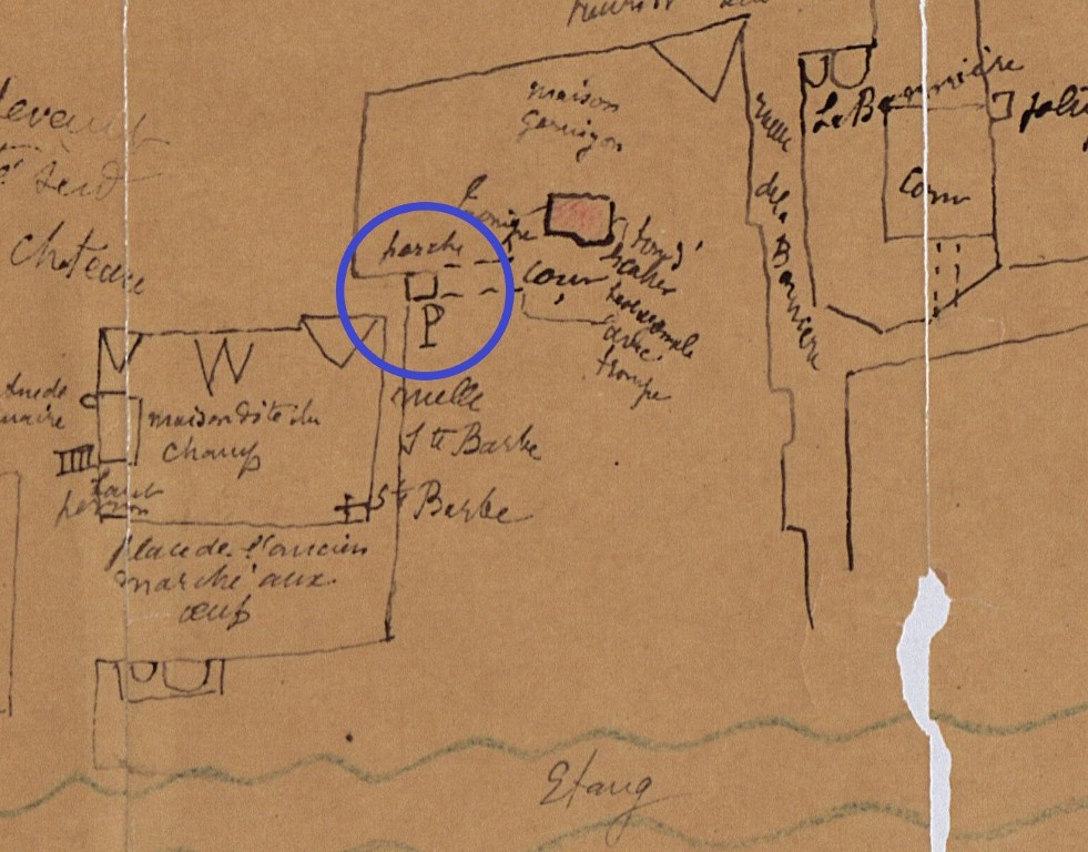 Mention du porche sur un plan de Joseph des Bouillons à la fin du 19e siècle