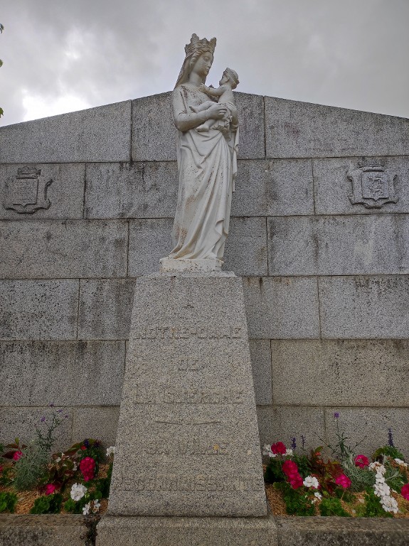 Vue de la Vierge à l'Enfant en marbre sur son socle en granite