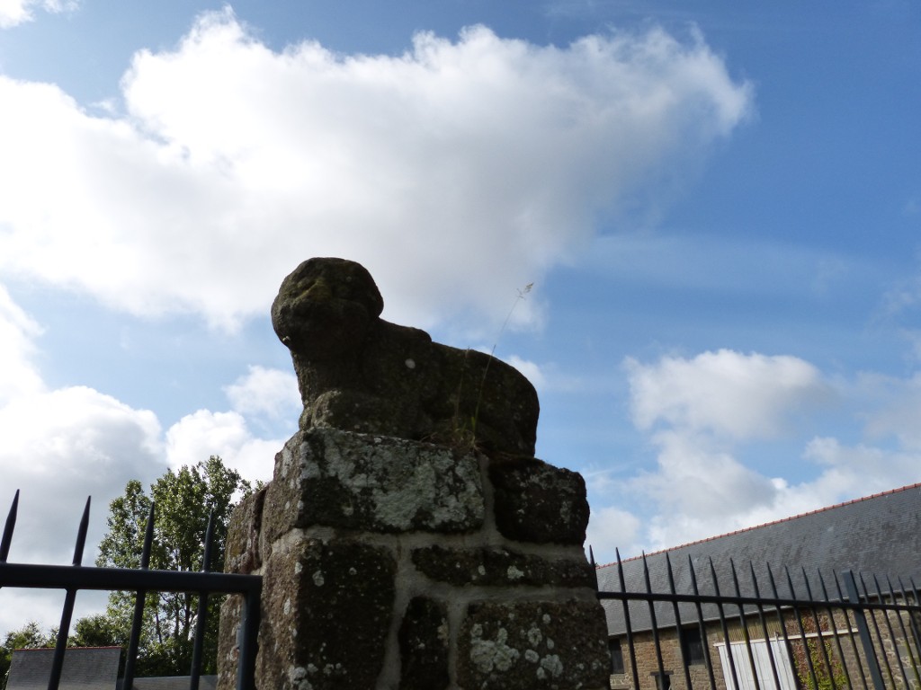Détail d'une sculpture sur le sommet d'un pilier de portail.Immatriculation