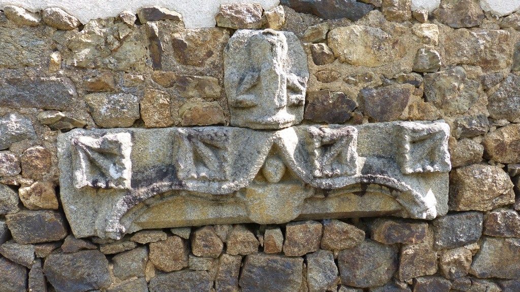 Détails d'un décor en réemploi dans une maçonnerie à l'entrée de la propriétéImmatriculation