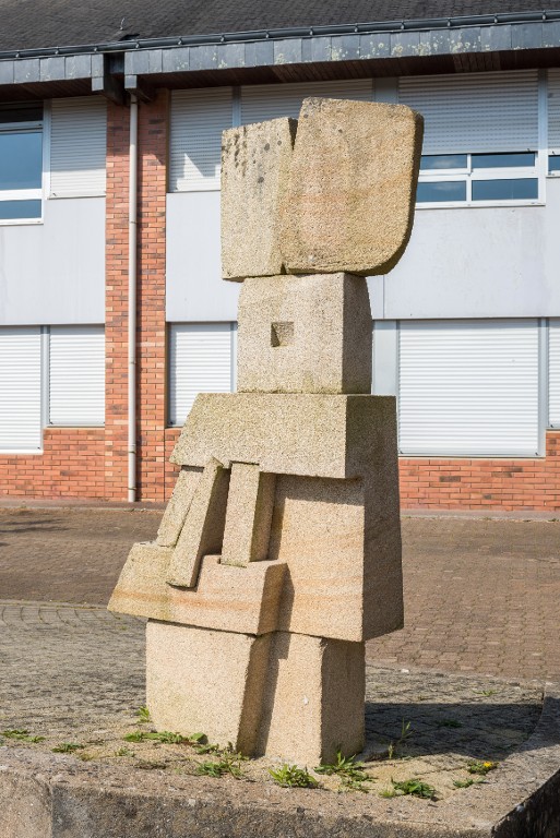 Michel Politzer, Espace sculpté, 1986 : un des trois "totems" en granite beige de Gourin.Immatriculation