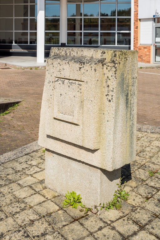 Michel Politzer, Espace sculpté, 1986 : un des trois "totems" en granite beige de Gourin.Immatriculation