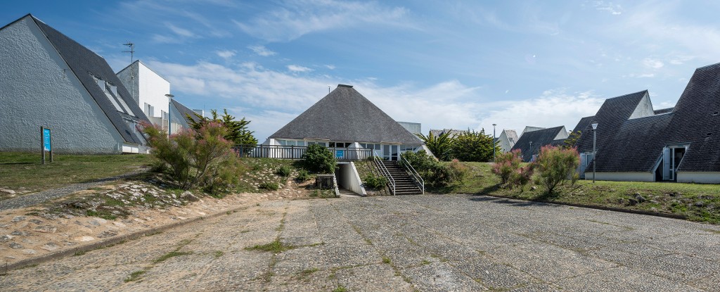 Le bâtiment collectif des gîtes surplombe une grande cour carrée propice aux rencontres et aux échanges. Les courbes de terrain dissimilent un accès fonctionnel à la laverie située sous la pyramide.Immatriculation