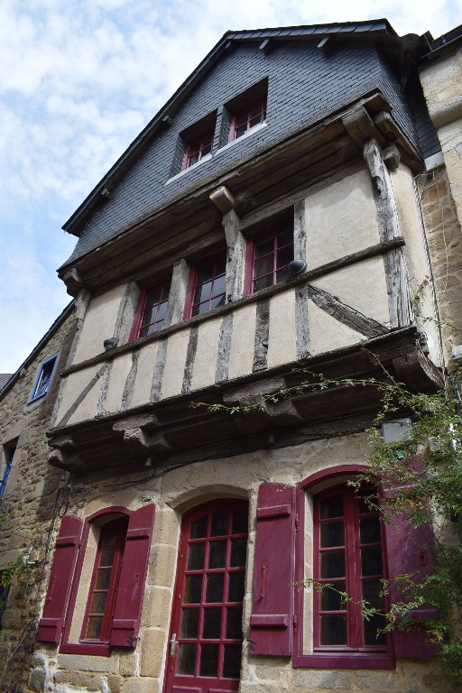 Façade en pan de bois avec encorbellement sur solives et essentage d'ardoisesImmatriculation