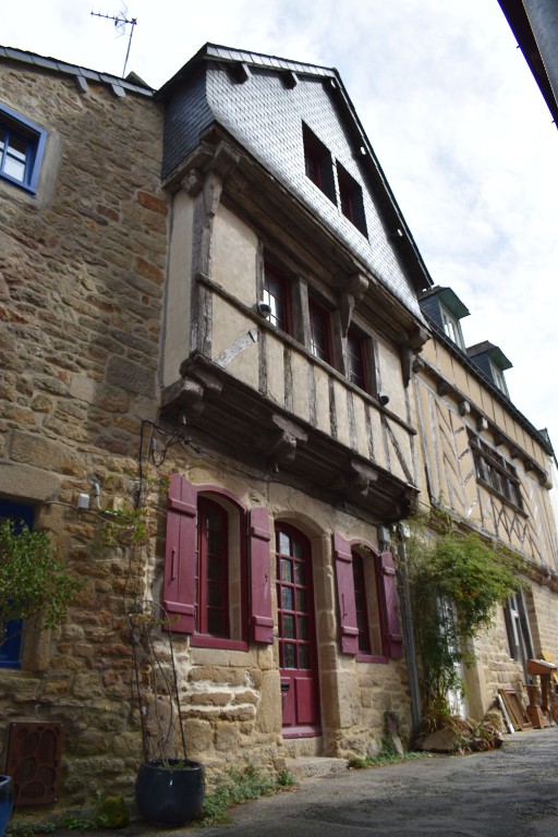Façade en pan de bois avec encorbellement sur solives et essentage d'ardoisesImmatriculation