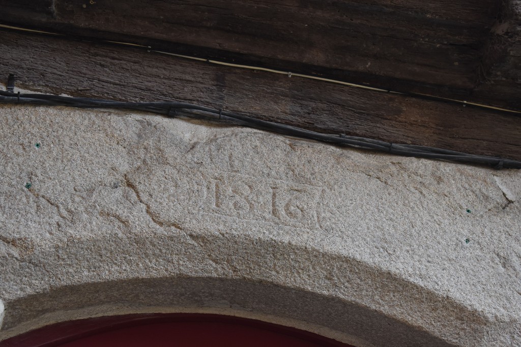 Détail d'une inscription sur l'arc en plein cintre de l'entréeImmatriculation