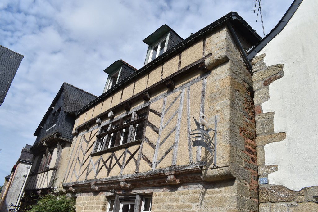 Détail de la façade en pan de bois avec encorbellement sur solivesImmatriculation