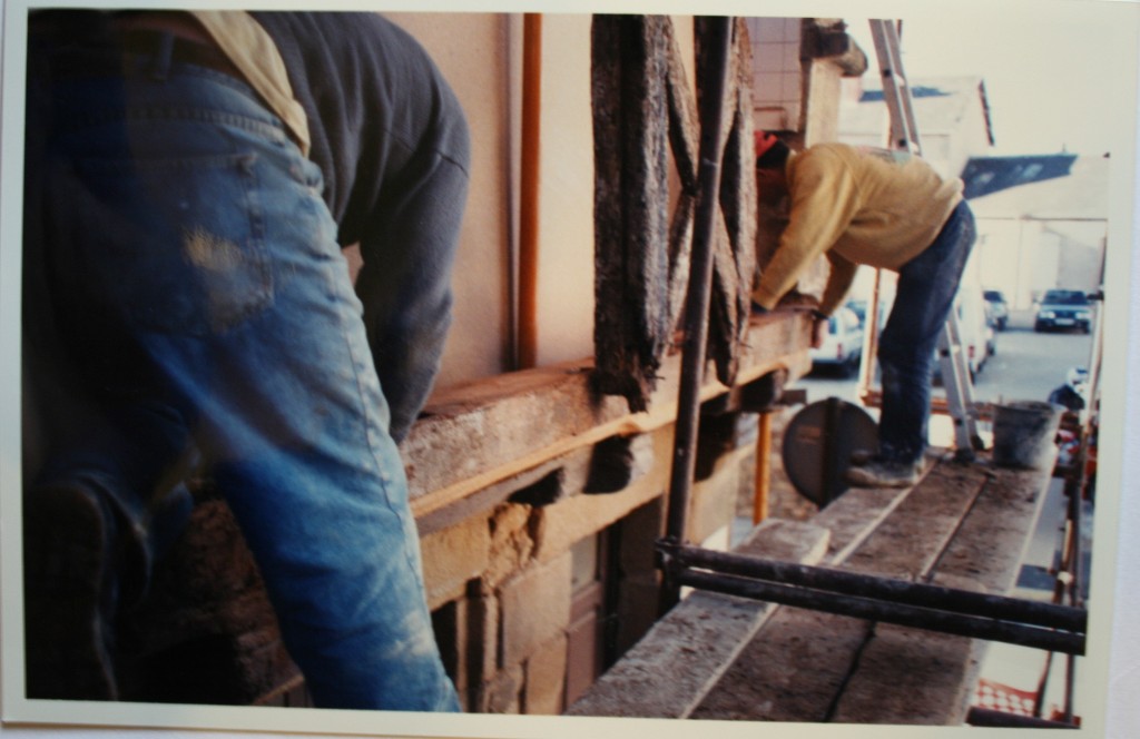 Les artisans à l'œuvre lors de la restauration en 1997.Immatriculation