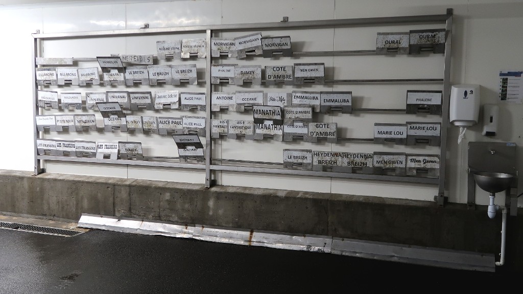 La criée de Keroman : affichage des noms des naviresImmatriculation