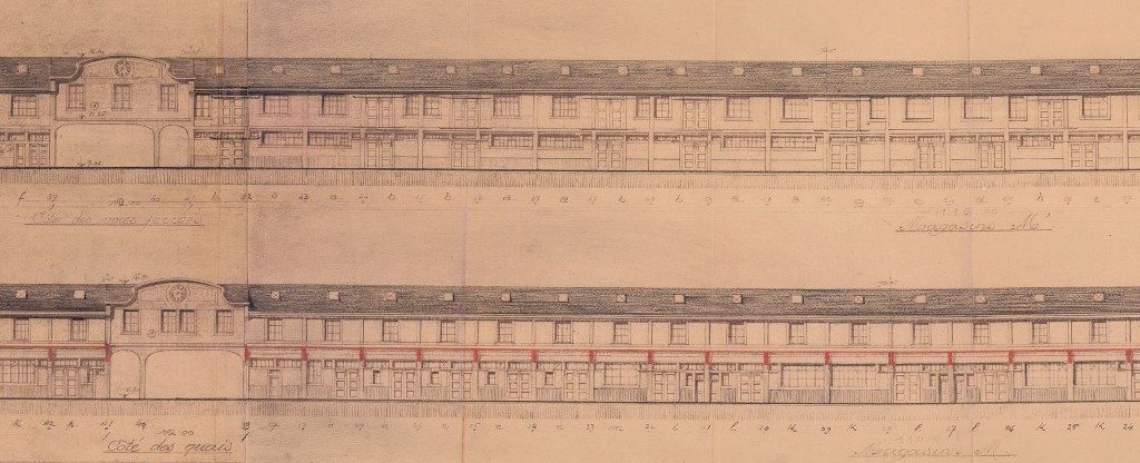 Magasins des mareyeurs, façades et coupe, plan dressé par Etablissement Zublin et Cie 25/10/1923 (détail)Immatriculation