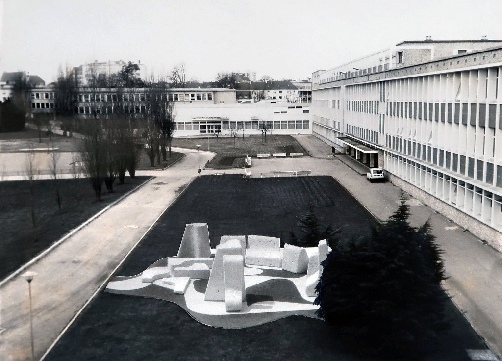 Maquette de l'uvre de Roger Joncourt, Jean-Paul Jappé et Joël Moulin. Mise au point environnement végétal, mars 1975.Immatriculation