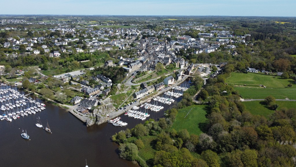 Vue de lanse du rodoir et du débouché du ruisseau dans la Vilaine. Vue aérienne depuis le sud-ouest.Immatriculation