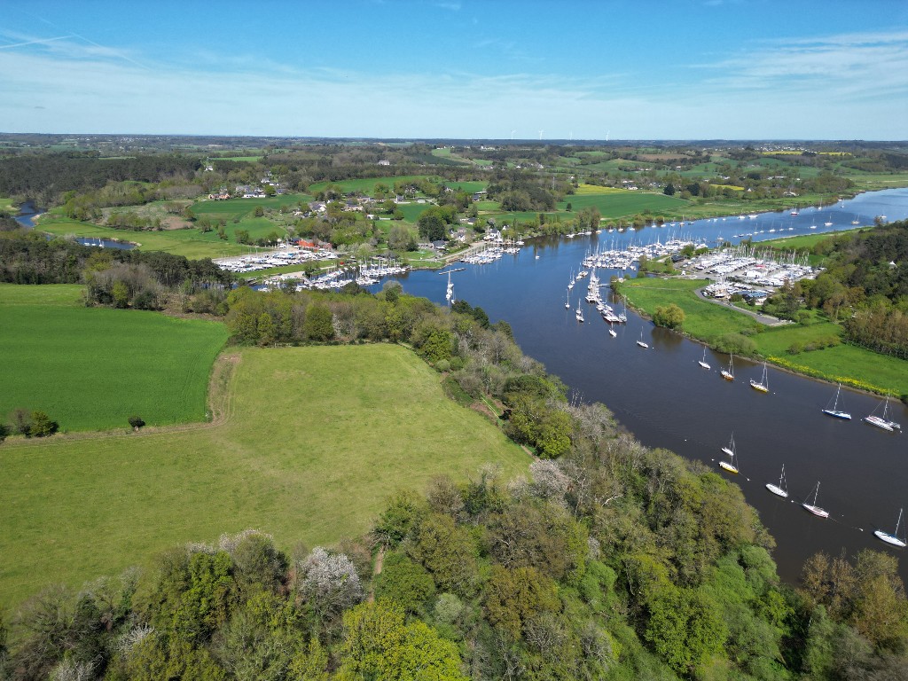 Au premier plan, le promontoire du Château à Péaule, qui surplombe la confluence entre la Vilaine et la rivière de lÉtierImmatriculation
