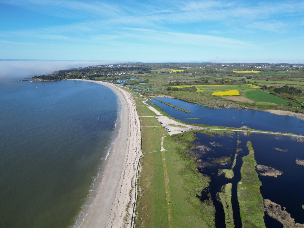 Le cordon dunaire au sud de lanse de Suscinio et la pointe de Beg Lann, qui constitue actuellement une zone propice au mouillage déquipements légersImmatriculation