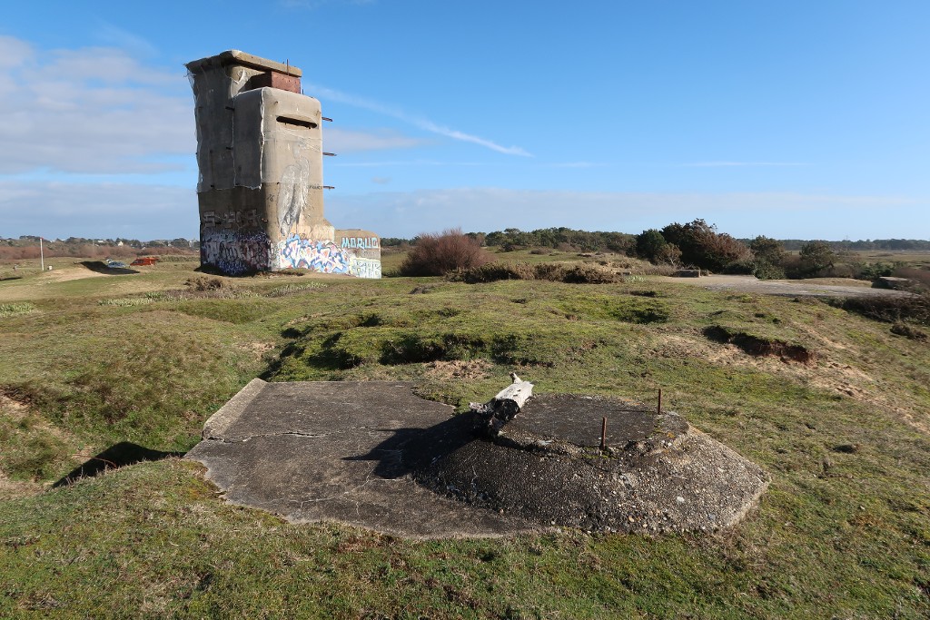Vue générale du bunker - poste de direction de tir depuis le sud-ouest. Au premier plan, un bunker - poste d'observation et de tir dit Tobruk-StandImmatriculation