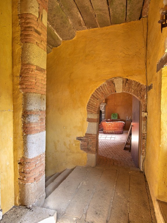 palier de l'escalier à l'étage ; alternance de briques et granitImmatriculation