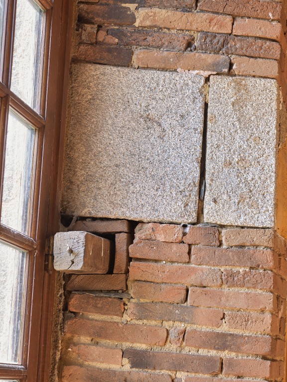 Barre de bois qui s'intègre dans le mur pour barricader la fenêtre à l'étageImmatriculation