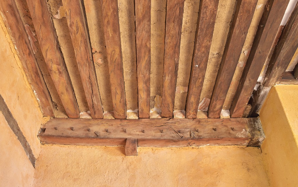 Une succession de crochets chevillés dans la poutre de la pièce à l'étageImmatriculation