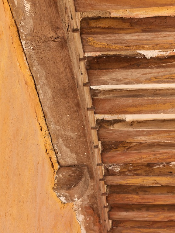 Une succession de crochets chevillés dans la poutre de la pièce à l'étageImmatriculation