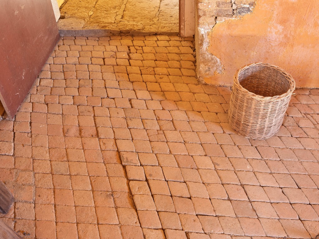 Dallage à l'étage de petits carreaux de terre cuite en losangeImmatriculation