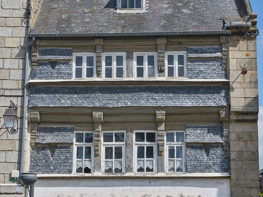 Un essentage d'ardoises masque en façade l'organisation du pan de bois.Immatriculation
