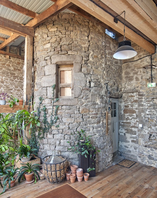 Fenêtre et porte d'accès percées dans la tour d'escalier du bâtiment sur rue.Immatriculation