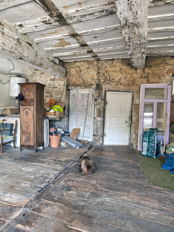 Premier étage sur rue : doubles portes de communication vers la cage d'escalier et trace de cloisonnement de la pièce.Immatriculation