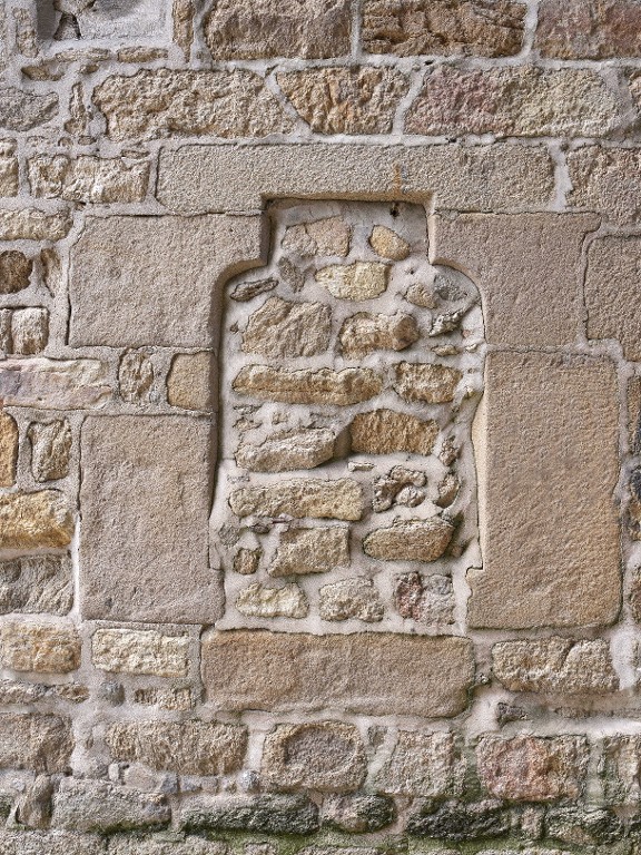 Fenêtre à linteau sur coussinets bouchée, au rez-de-chaussée du gouttereau rue Jean-Jacques Rousseau.Immatriculation