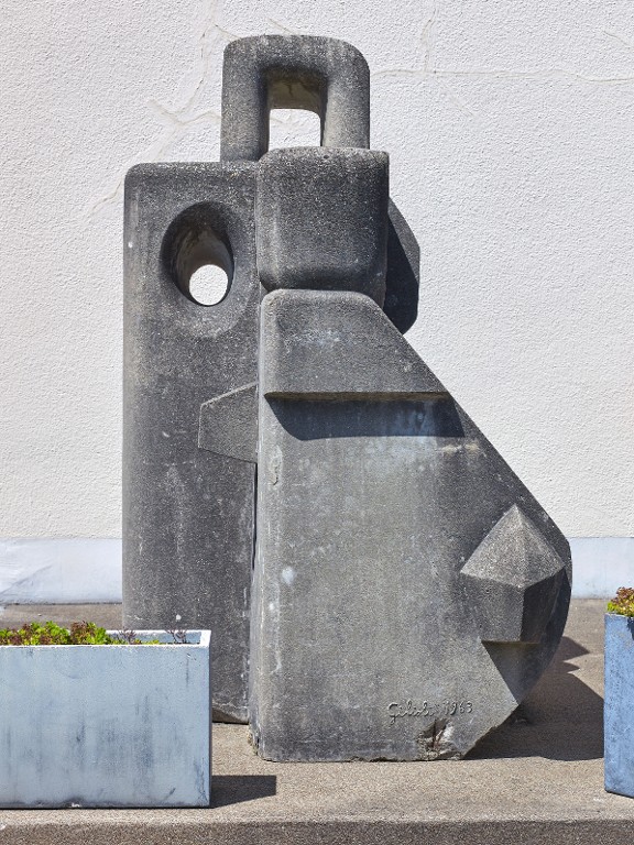 Émile Gilioli, sculpture en béton, 1963. Vue d'ensemble.Immatriculation