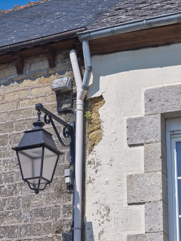 L'enduit dégradé permet de voir le mur en terreImmatriculation