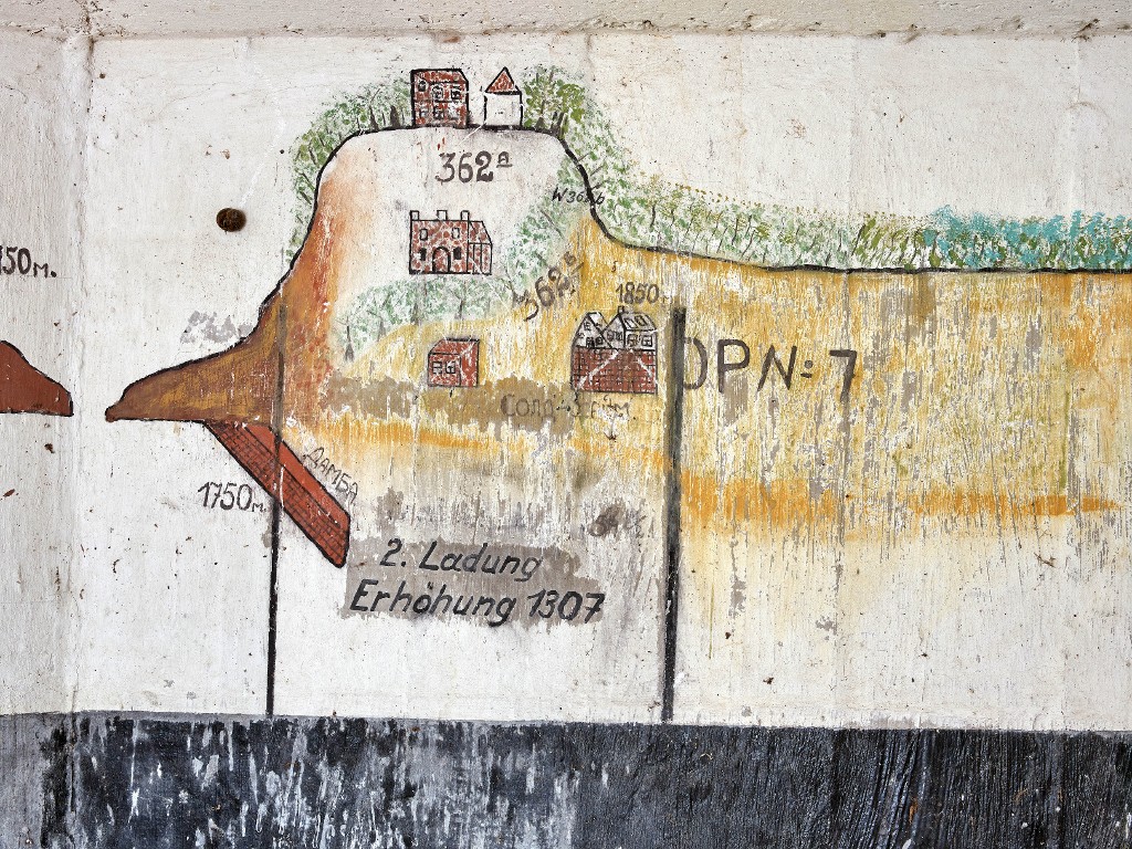 Vue intérieure : panorama avec points de repères et instructions de tir. On reconnait la pointe de Pléneuf et certaines de ses demeuresImmatriculation
