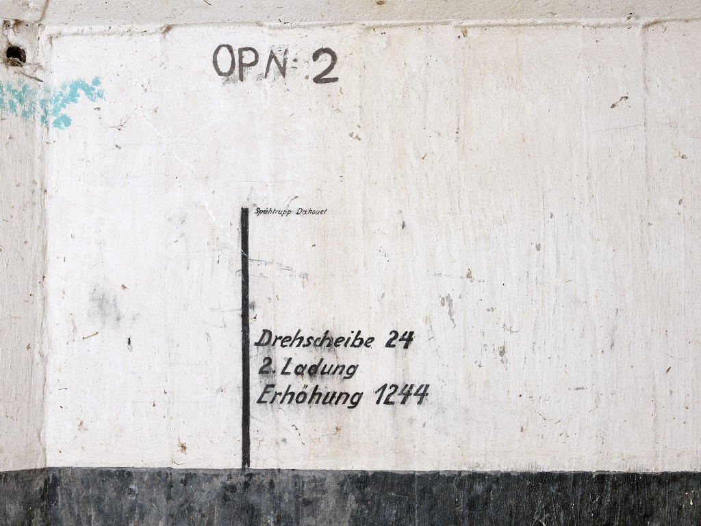 Vue intérieure : panorama avec points de repères et instructions de tir vers le sud-ouestImmatriculation