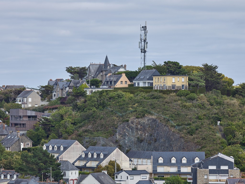 Vue du panorama depuis la pointe de la Guette : Pléneuf-Val-André. Sur ce point haut, une demeure dotée d'une tour a servi de point de repère durant la Seconde Guerre mondialeImmatriculation
