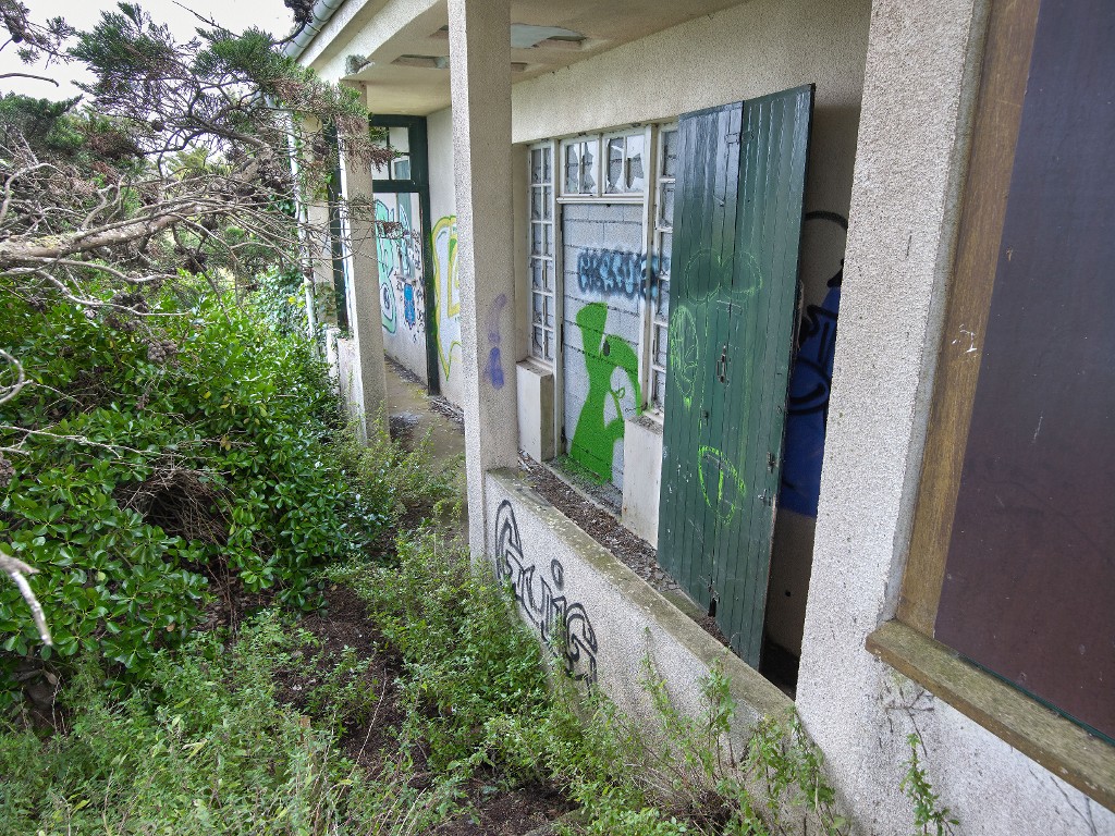 Vue de l'élévation nord de la maison implantée sur la pointe de la Guette. Cette maison qui fait l'objet d'occupation illégale régulière sera déconstruite courant 2026 pour renaturer la pointe de la GuetteImmatriculation