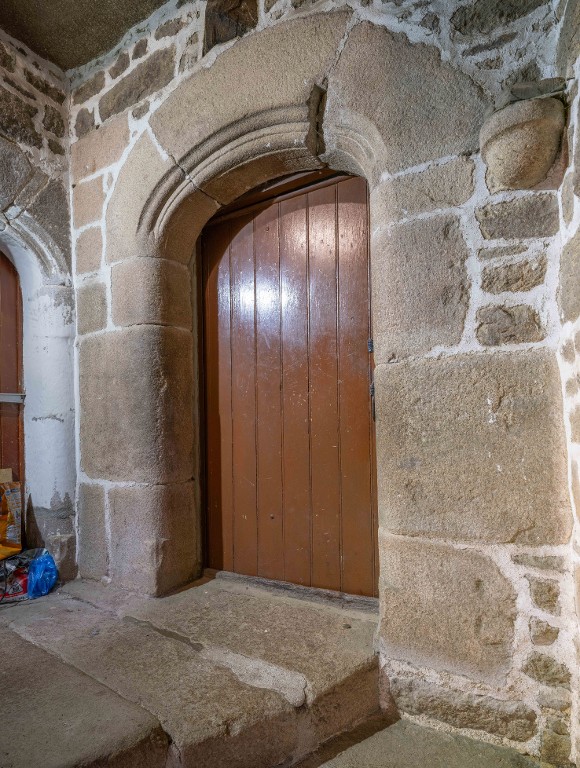 Porte du premier étage : le linteau en anse de panier s'orne de plusieurs moulures, les jambages sont arrondis et terminés par un décor de feuille stylisée.Immatriculation