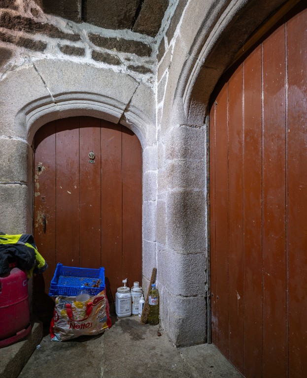 Portes mitoyennes au premier étage au linteau mouluré en anse de panier. Celle de droite ouvre sur une pièce de l'Hôtel des Uzilles, tandis que celle de gauche ouvre sur l'actuel 14 rue au Lait.Immatriculation