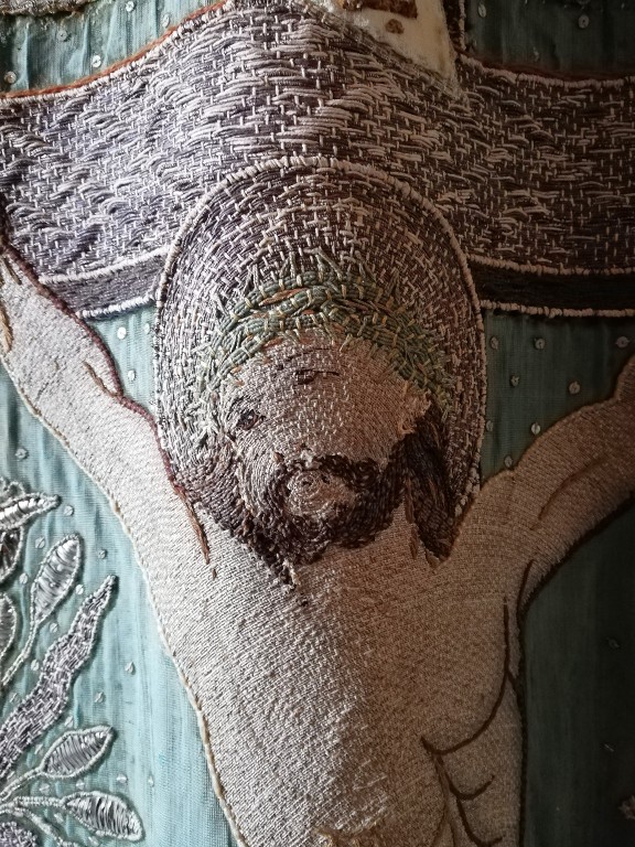Bannière : Assomption / Crucifixion de l'église Saint-Maudez (Hengoat),