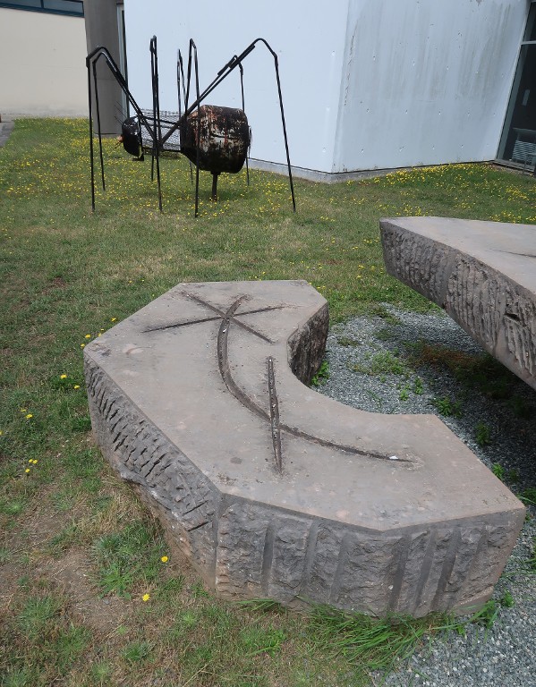 Groupe sculpté 'Grande table de conférence et bancs' d'Henri-Georges Adam (1967) : un des trois bancs.Immatriculation