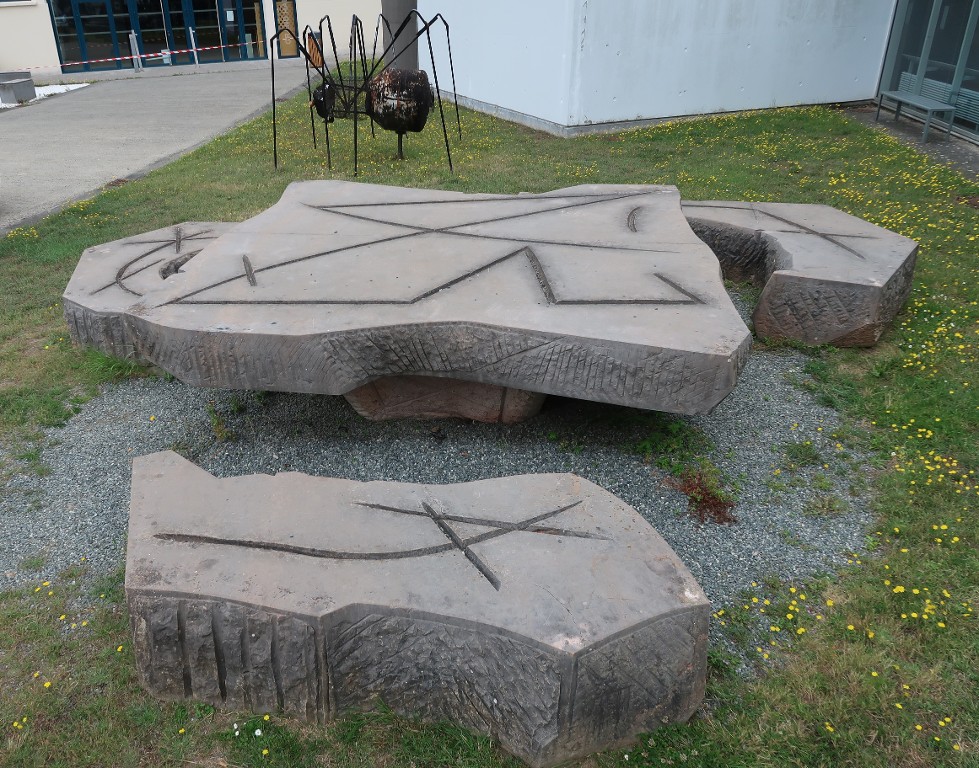 Groupe sculpté 'Grande table de conférence et bancs' d'Henri-Georges Adam (1967).Immatriculation