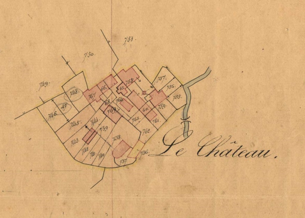 Extrait du cadastre parcellaire de la commune de Plougras, section B dite du Bourg, troisième feuille, 1834 : Le Château (lieu-dit)Immatriculation