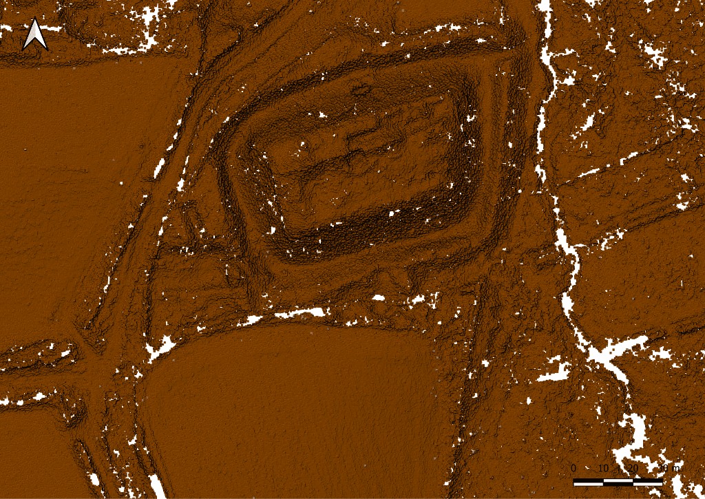Plan du château de Beffou sur fond Lidar HD de l'Institut national de l'information géographique et forestière (rendu brut en nuage de points)Immatriculation