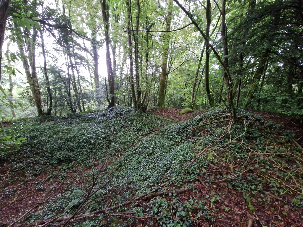 Vue générale de la plate-forme sommitale : les creux et les bosses correspondent à du bâti ruiniformeImmatriculation