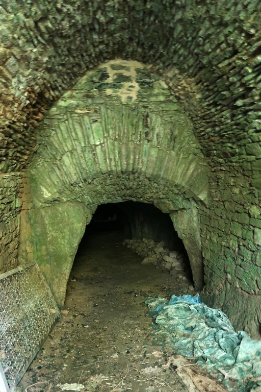 Vue de l'entrée du souterrain : arc en berceau s'appuyant sur le rocher et soutenant la voûteImmatriculation