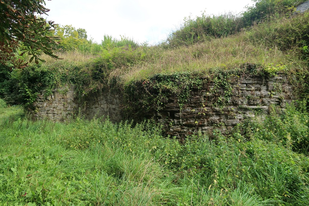Vue du châtelet sur le front sud-ouest. Les deux tours sont envahies par la végétation. Cette partie du château semble montée en pierre de tailleImmatriculation